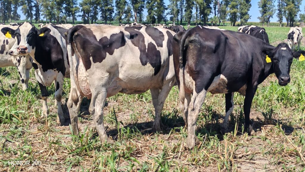 El sistema de producción es pastoril, con suplementación, ración en fosa y mixer en la parcela. Pastorean todo el año, aunque sea una parcela chica. Son vacas medianas a grandes de 650 kg.